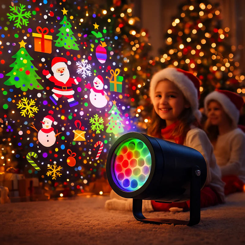 São 16 padrões natalinos que se movem suavemente, trazendo um brilho mágico que transforma qualquer ambiente em um Natal acolhedor, alegre e iluminado